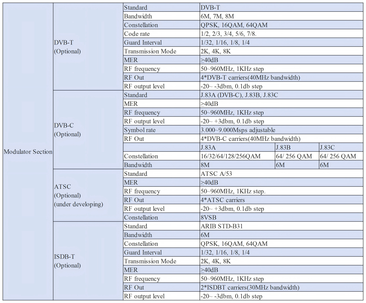 • Excellent modulation quality MER≥42dB